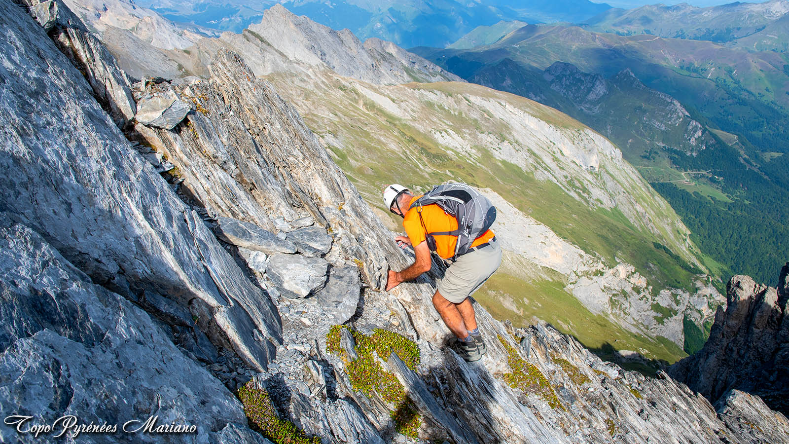 - La corde n’est pas utile sauf si vous voulez assurer quelqu’un sur les dalles (20m de corde avec 2 à 3 coinceurs/friends), par contre le casque est vivement conseillé à cause des pierres pouvant descendre à tout moment du sommet.