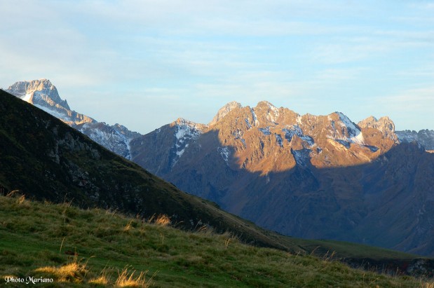Après ces belles couleurs du lever de soleil, retour à la randonnée: depuis le virage (1600m), suivre, en gros vers le Sud-Est,une sente à flanc, dans les pâturages. En 20mn, on atteint la crête Nord du Cabaliros, laissez à gauche la Tucoy, dôme de 1809m.