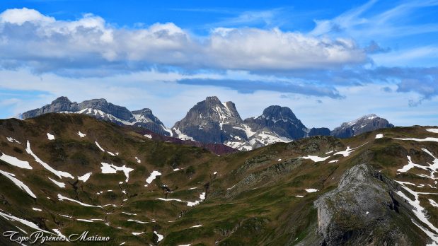 Vers le Cuyalaret (2289m) et le Pic d’Anéou (2364m) juste devant le Pic d’Anayet (2545m).