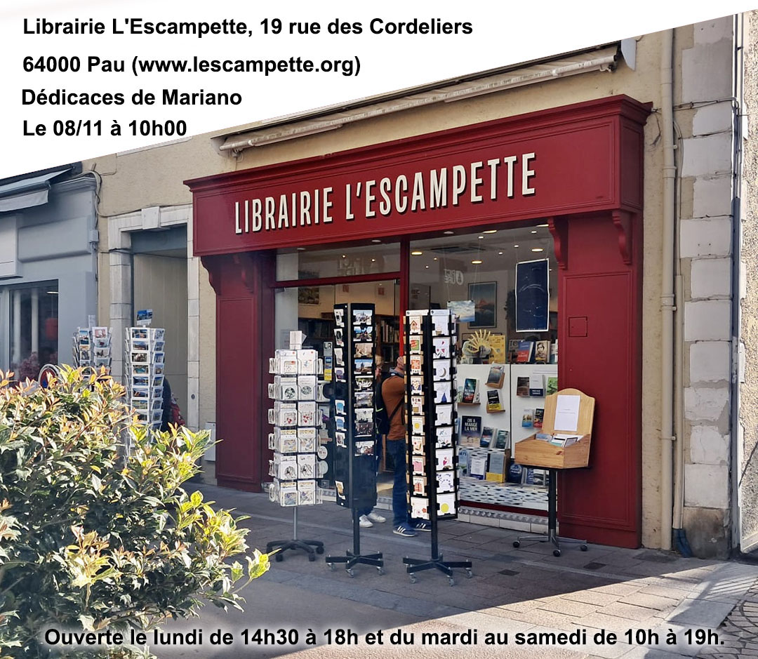 - Dimanche 07 décembre de 10h à 13h à la Librairie Tonnet (3 Bis Pl. Marguerite Laborde, 64000 Pau)