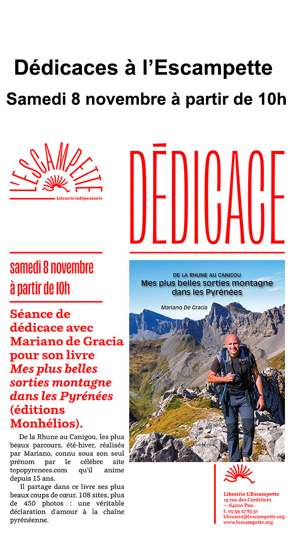 - Samedi 20 et dimanche 21 décembre à la librairie de Nay chez Cécile Peyrucq de 10h à 18h00.