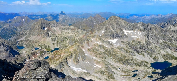 On peut voir au loin, les 2 géants du secteur: le Balaïtous et le Palas avec les 3 cols pour basculer côté espagnol.