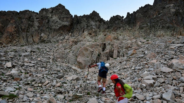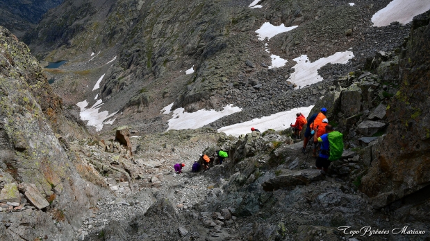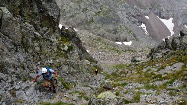 nous descendons dans les éboulis pour remonter à la brèche des Ciseaux ou au Passe de Barane.