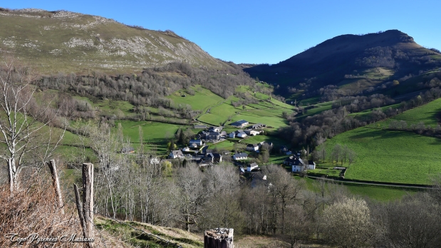 La vue derrière nous sur le petite village de Licq-Athérey.
