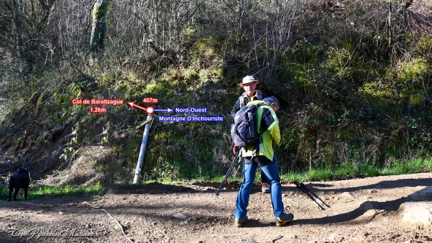 Vers 407m, prendre à droite en suivant une piste (Nord-Ouest). Si vous souhaitez atteindre immédiatement le sommet d’Apolotzegagna sans emprunter le grand détour, continuez sur la piste à gauche pendant environ 35 minutes jusqu’au col de Baraltzaga (600 mètres).