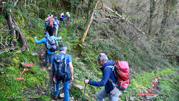 vous devez quitter le sentier qui mène à Athérey et monter à gauche, en direction de l’ouest. Ignorez la croix jaune.