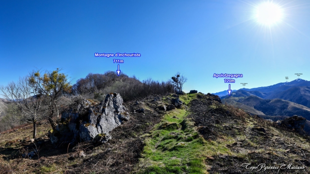 Vous êtes sur la commune d’Haux, sur la montagne d’Intchouriste, culminant à 720m mètres. Le sommet offre un magnifique point de vue sur le village de Haux, ainsi que sur la partie haute de la vallée du gave (Le Saison) et sur les Pyrénées basques et béarnaises.