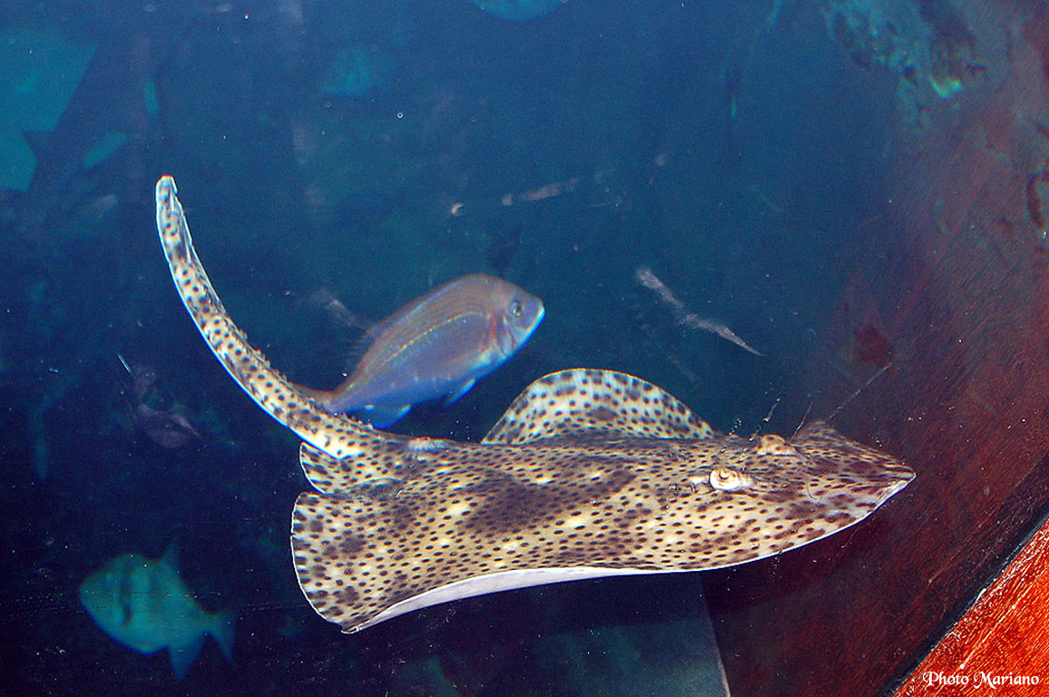 • Avec près de 2,5 millions de litres d’eau, le grand bassin océanique évoque une partie de l’Océan Atlantique. Divers biotopes – les plages, les zones rocheuses avec leurs grottes et crevasses et autres fonds marins – y sont représentés. Nous pouvons y admirer diverses espèces benthiques comme les torpilles (Torpedo marmorata), les raies (Raja clavata) et d’autres spécimens tels que les requins tigre (Odontaspis taurus) qui se reproduisent par oviparité.
