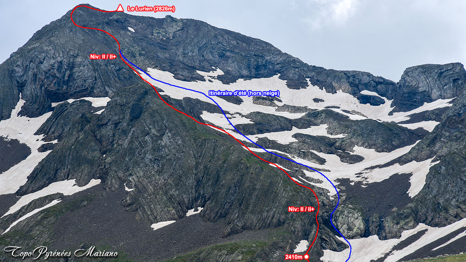 En hiver ou en début de saison lorsque les névés sont encore présents dans la face Nord du Lurien, cette randonnée n’est pas à la portée du simple randonneur. Il faut être expérimenté, avoir le bon matériel et savoir renoncer si les conditions ne sont pas bonnes, les pentes sont très raides et la moindre erreur peut-être fatale !