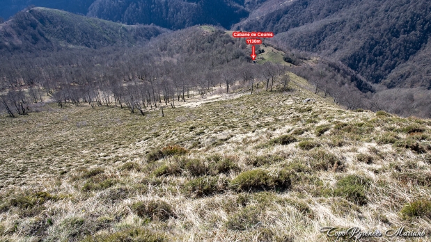 Le sentier file ensuite vers l’Ouest jusqu’à la cabane de Coums (1130m).