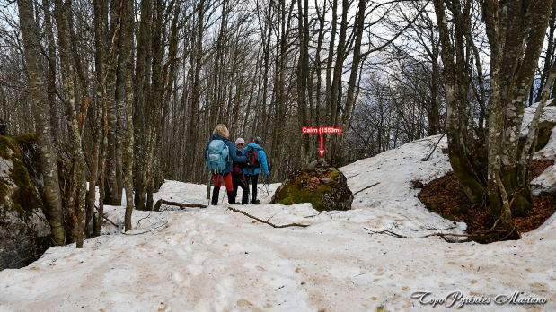 L’itinéraire franchit la crête Est du Soum de Gélaque vers 1050m/1060m (compter 1h15 depuis le Mondragon).