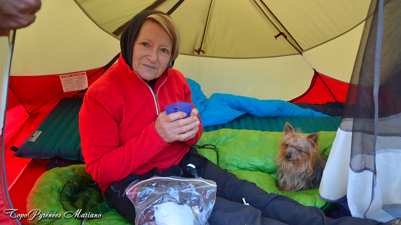 la nuit a été tempérée avec un +3° à l’extérieur et environ +8° à l’intérieur de la tente.
