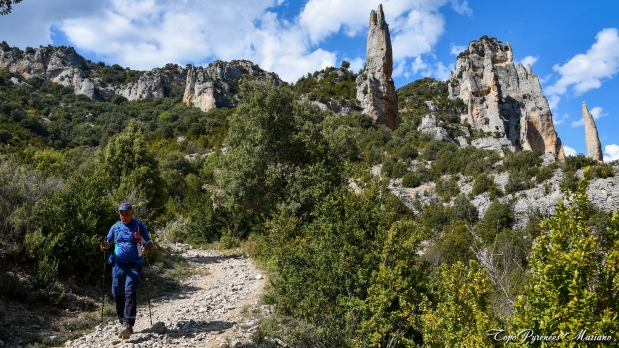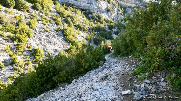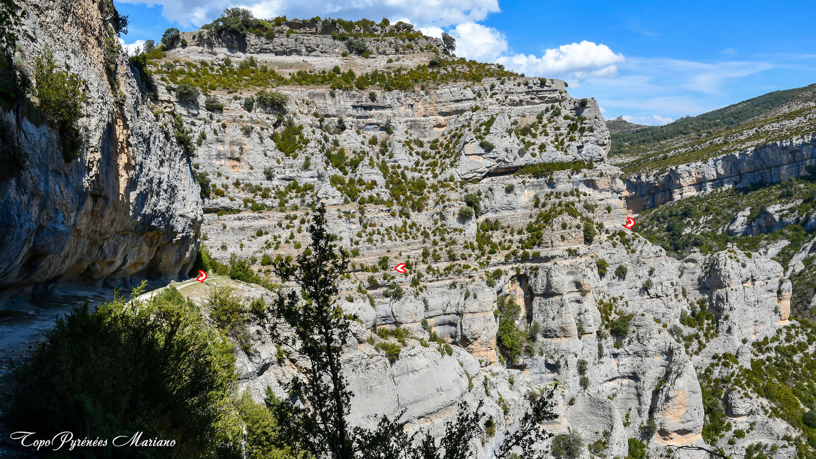 L’itinéraire de Rodellar jusqu’au Saltador de Las Lañas (Fin du Canyon du Mascún) est très bien balisé depuis 2022, rouge et blanc jusqu’à la jonction des itinéraires du Tour du Mascún et Letosa/La Bellostas. Le retour par les vires jusqu’au village abandonnée d’Otín demande de rester très attentif pour ne pas quitter le sentier qui est très bien marqué mais dont le moindre faux pas serait fatal ! ! !
