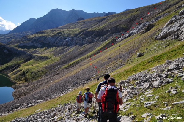 Depuis le lac, remonter vers le col Del Bozuelo 2110m.