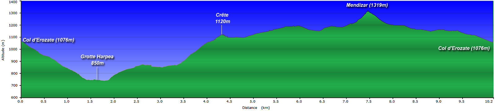 35 minutes depuis la grotte pour nous hisser en haut de la crête débonnaire menant au Mendizar.