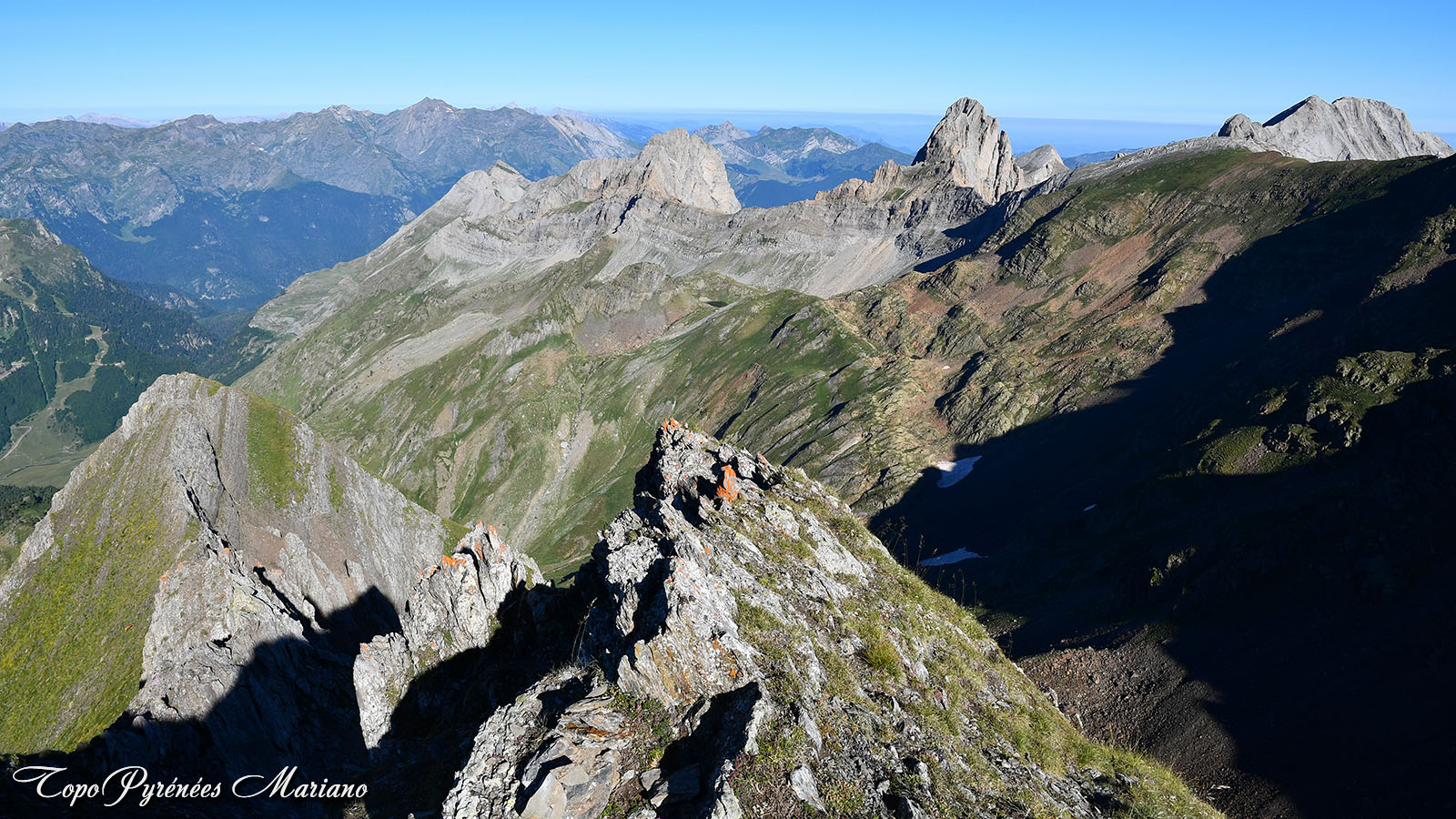 Panorama vers l’Est entre le Montaigu (2339m) et le Néouvielle (3091m).