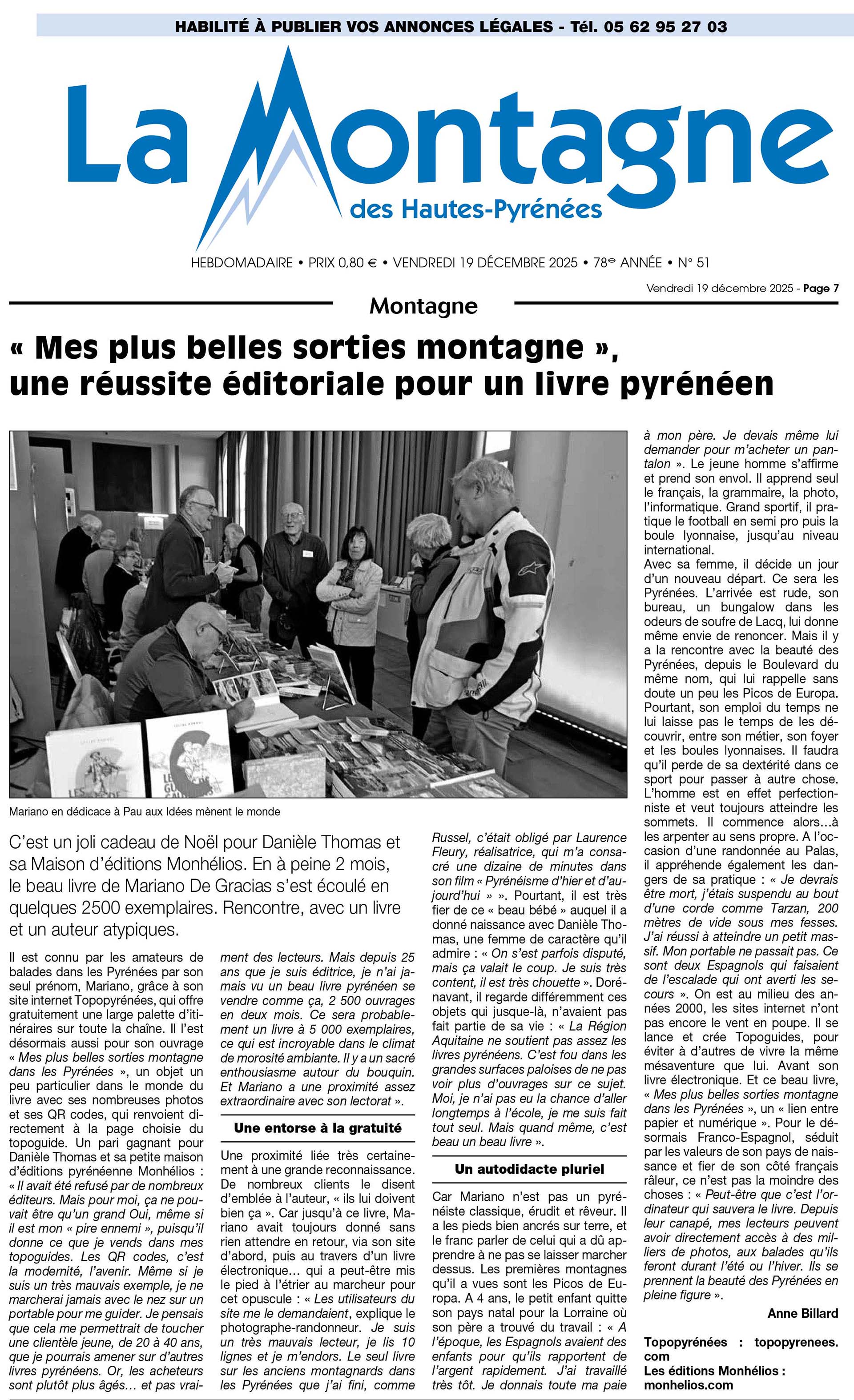- Librairie Peyrucq à Nay les 20 et 21 décembre (83 dédicaces)