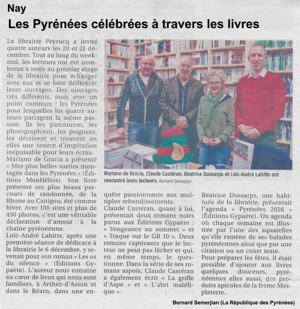 - Librairie Peyrucq à Nay les 20 et 21 décembre (83 dédicaces)