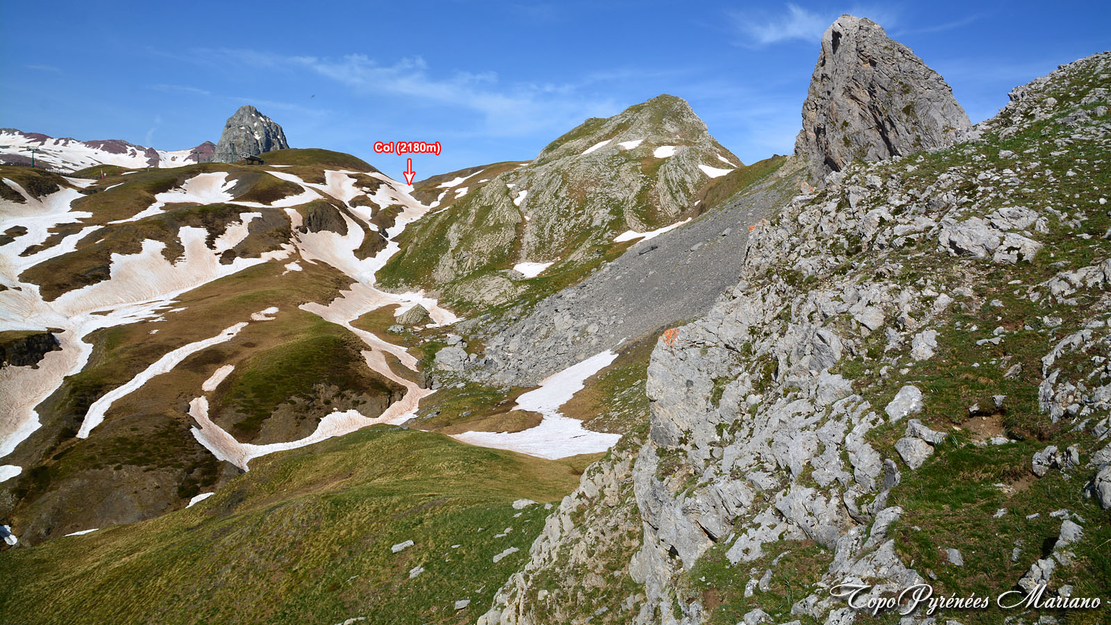 Pour la suite et notre dernier sommet, descendre la crête Nord-Ouest jusqu’au col d’Anéou.