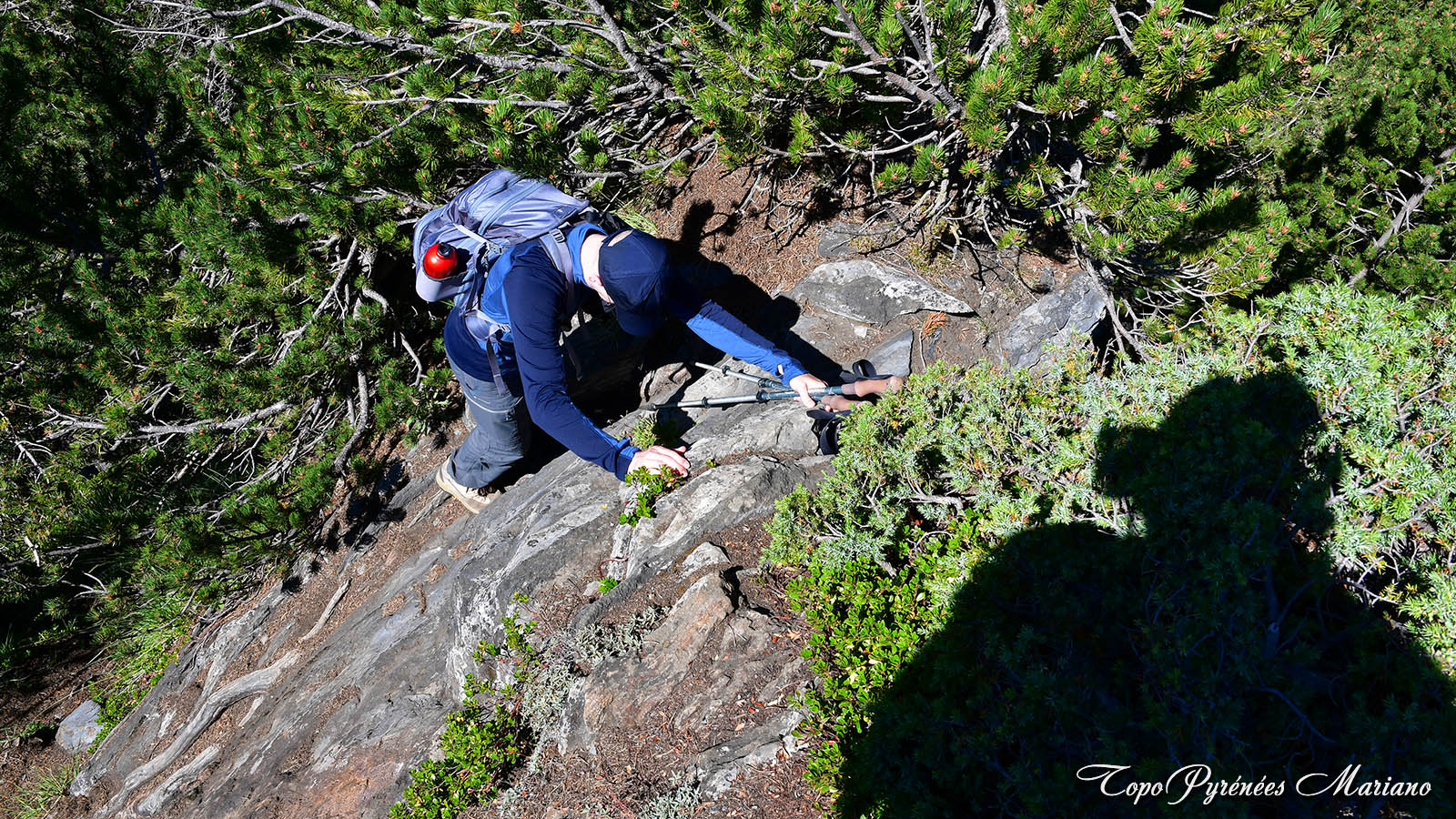 Des portions hors sentier sur la crête d’Erès Tiarrères où il faut un peu poser les mains par endroits, rien de difficile (Niv: II/II+)