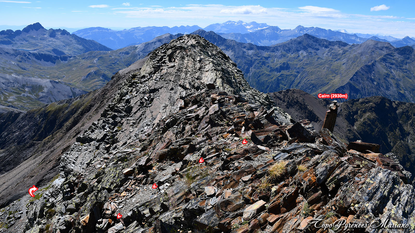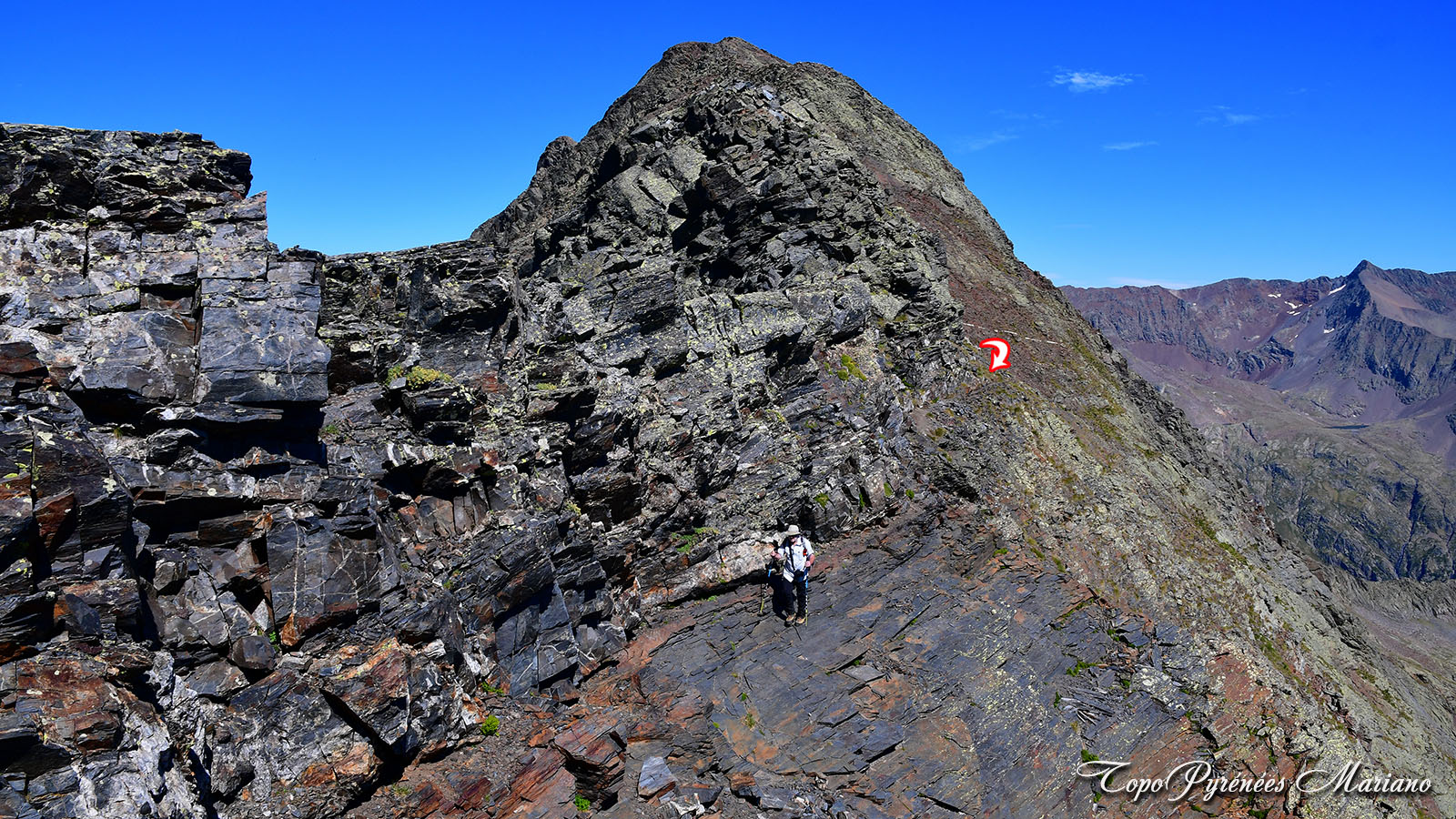 Pour le premier 3.000 de la journée, depuis le Pic de Cauarère, descendre en suivant le fil de crête frontière (Nord-N.E).