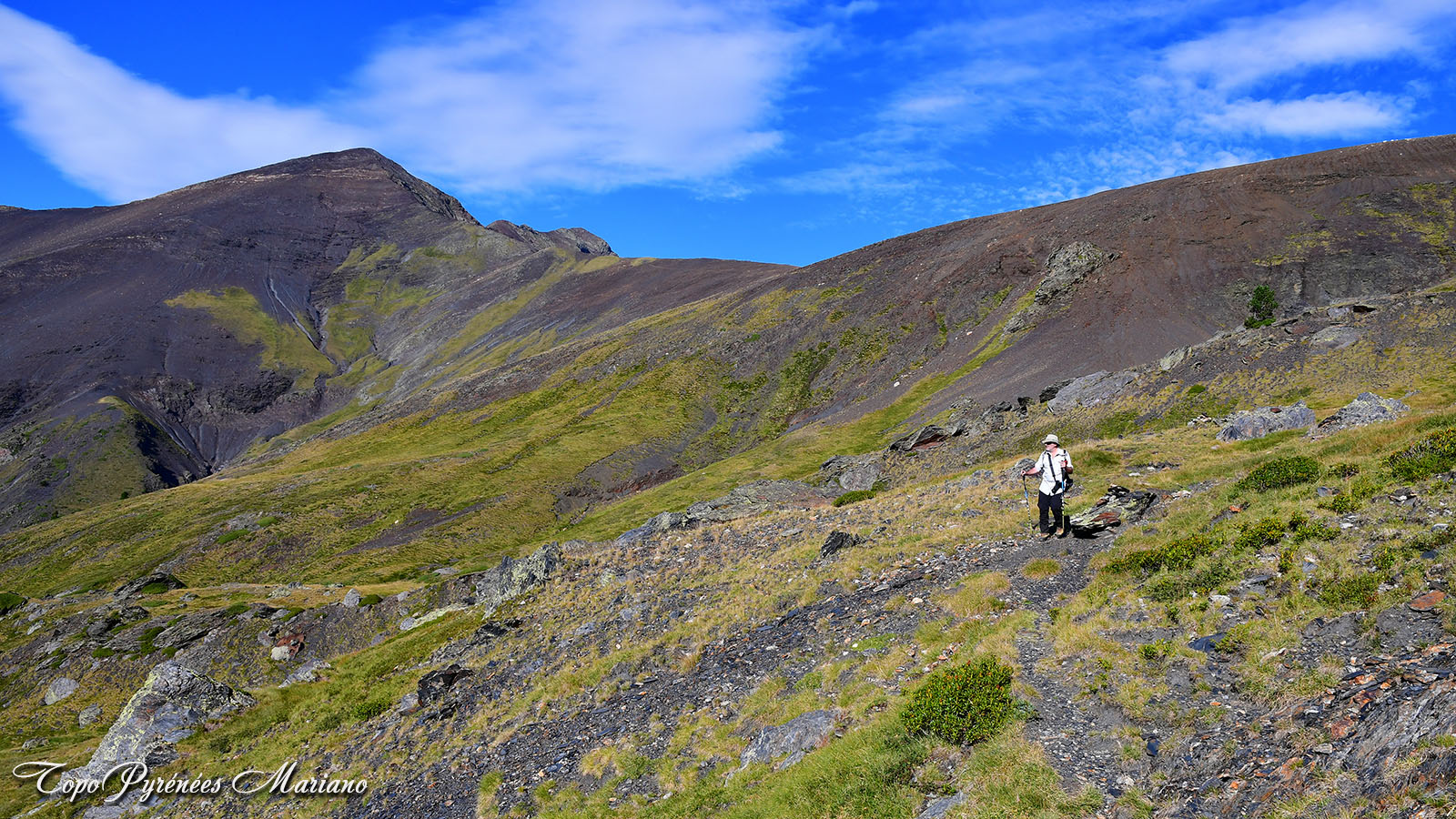 La descente du Pic de Cauarère au Port du même nom, demande de la prudence sur certains passages très pentus qu’il est préférable de contourner légèrement par la droite.
