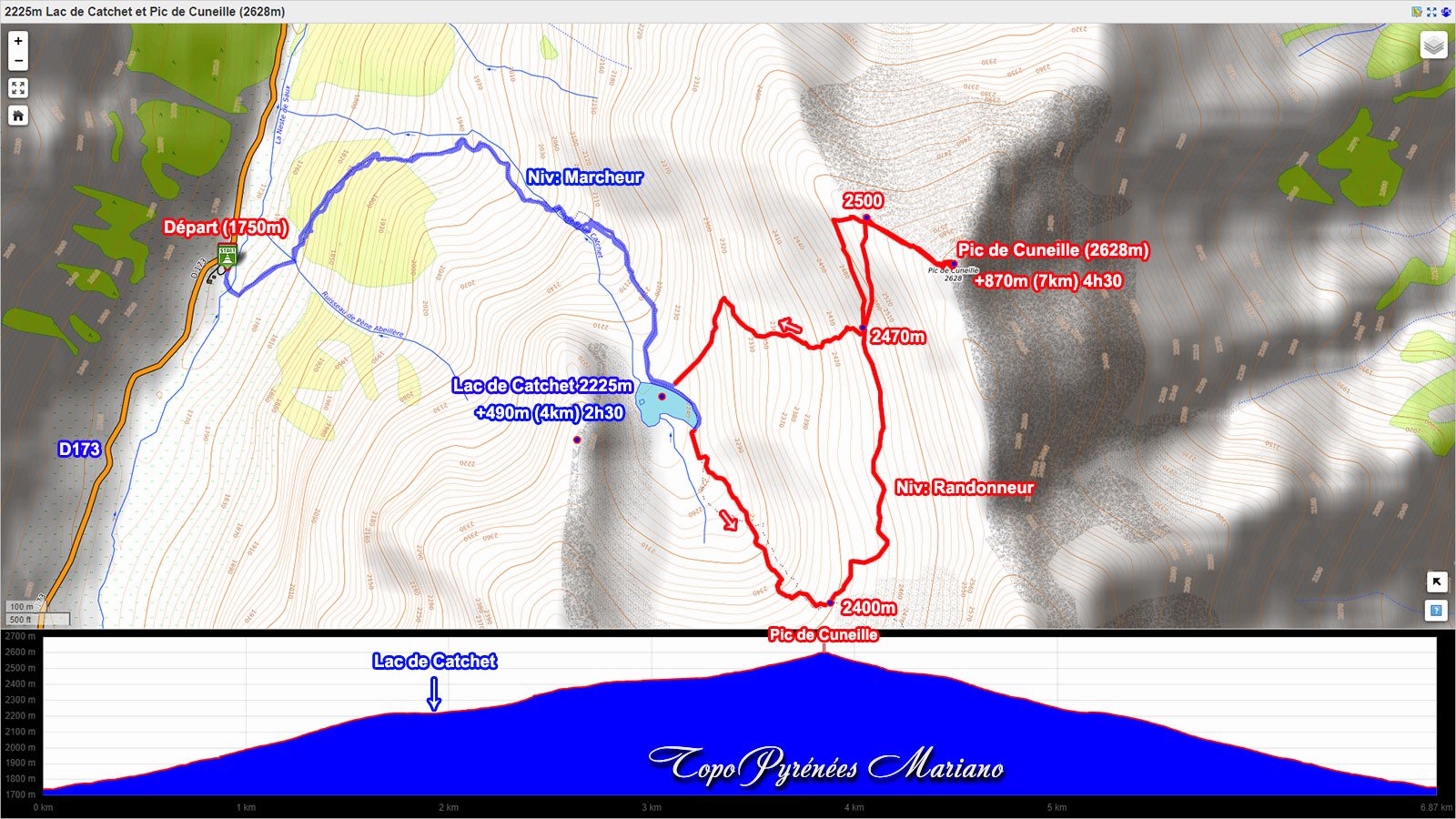 - Déniv: +870m – (2h45+2h00)= 4h45 – 7 km Niv: Randonneur