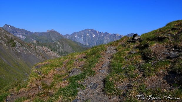 Revenir en descendant le fil de crête comme à la montée jusqu’au cairn altitude 2500m.