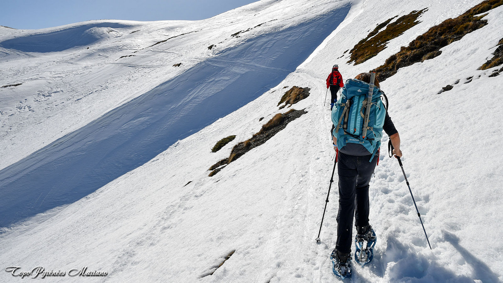 Les pentes ne sont pas trop raides et avec cette neige aucune difficulté.