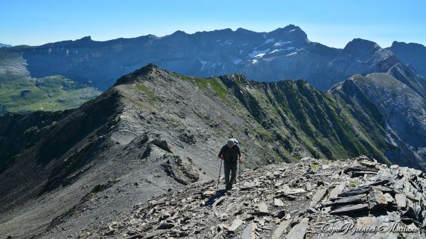 Descendre l’arête vers le col de Gabiédou (mi-calcaire, mi schisteux).
