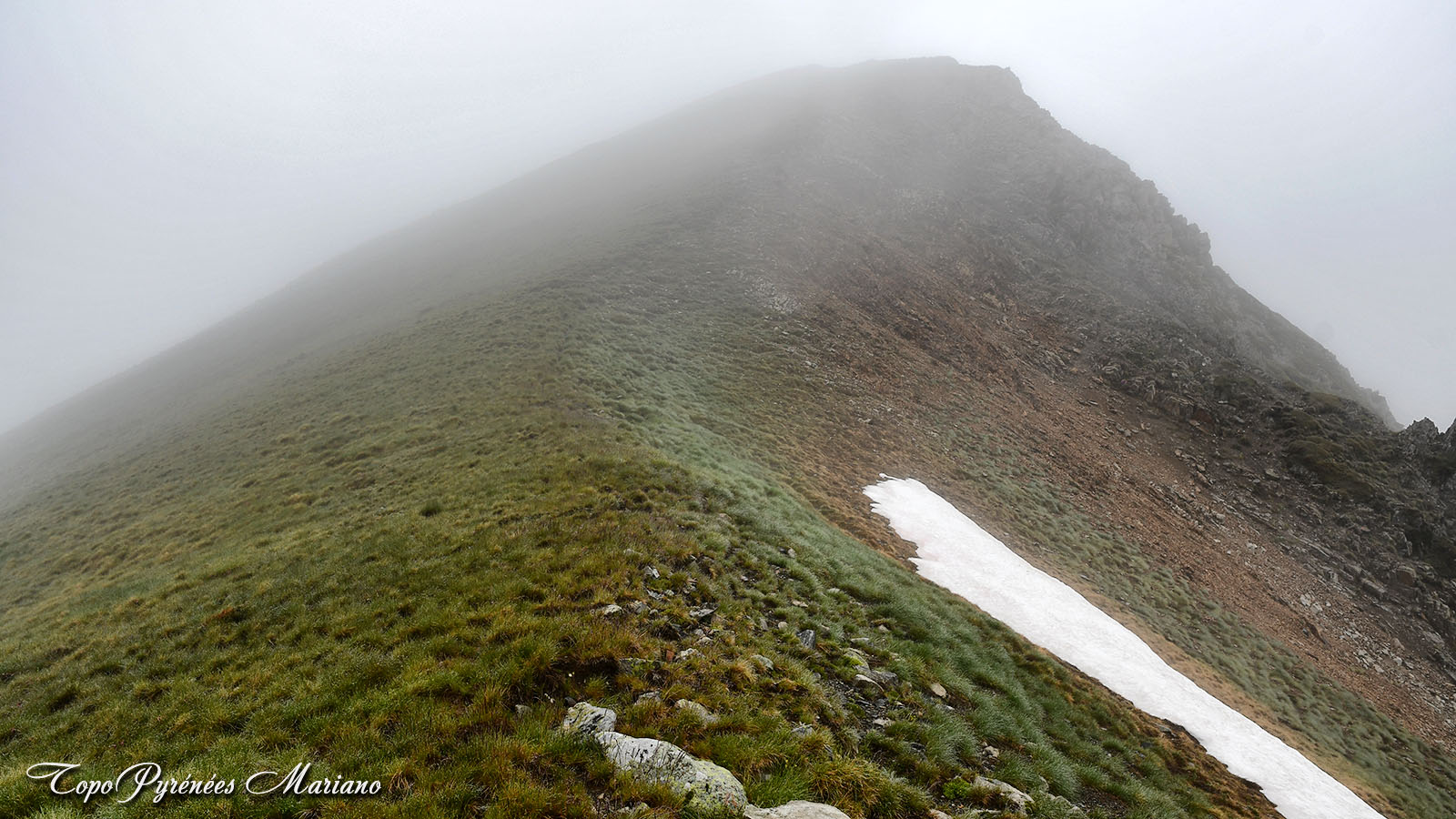 Depuis le sommet, revenir une dizaine de mètres en arrière, puis descendre en suivant la crête de Lurtet (versant Nord-Ouest).