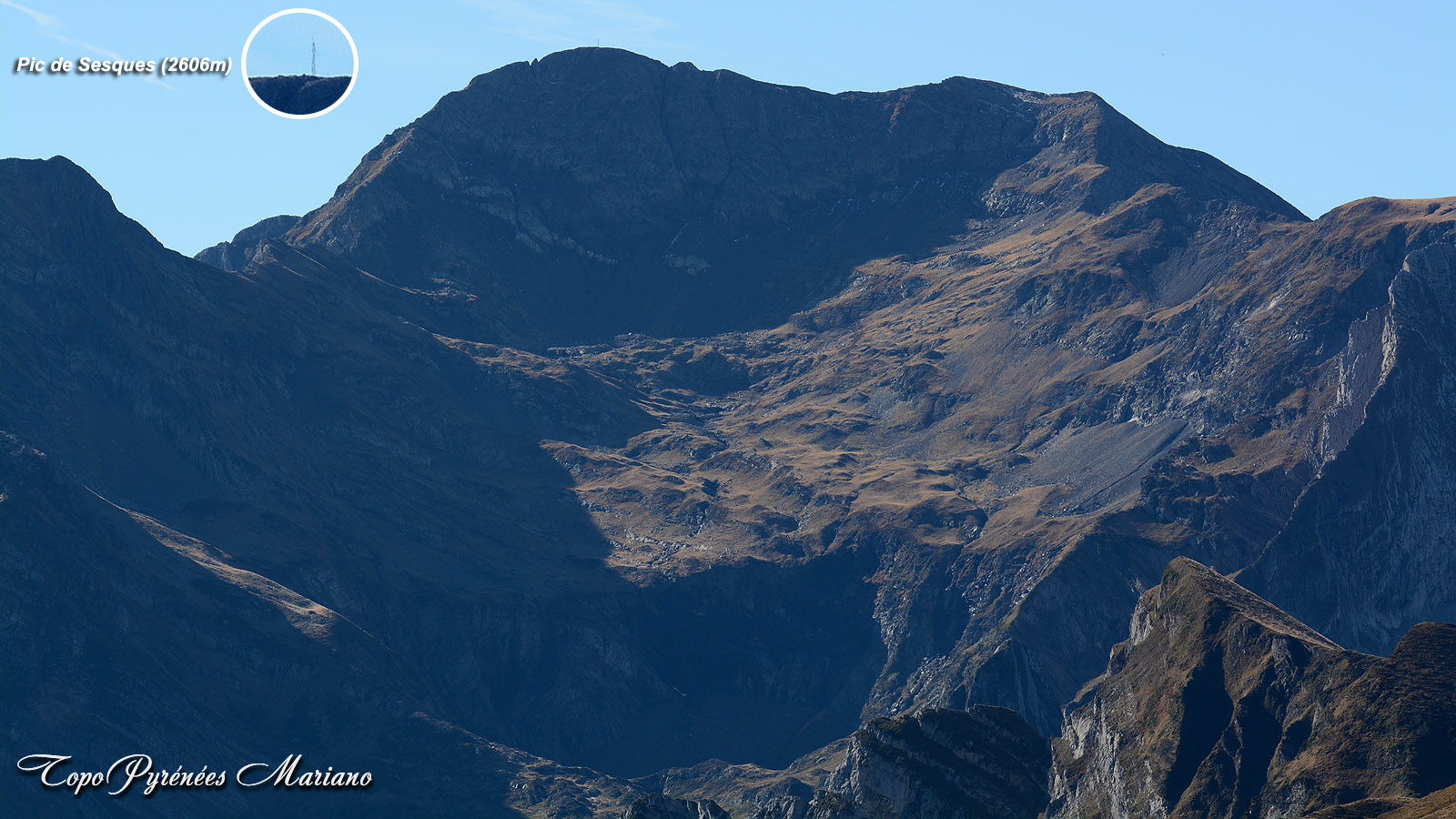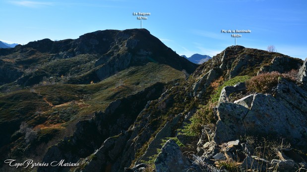 Depuis le Pic de la Sentinelle, descendre la crête Sud (sans danger) jusqu’au pied du Saigues.