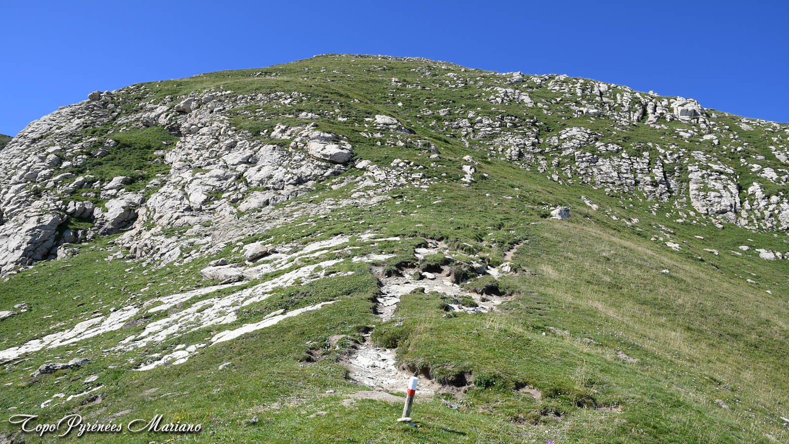 Pour le sommet, depuis le col suivre la sente montant vers le Sud-Ouest.