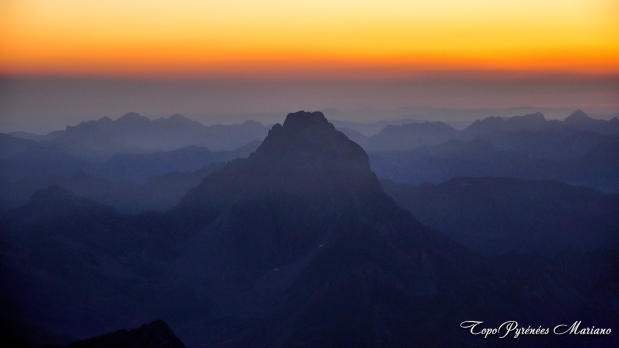Le soleil se couche derrière le pic du Midi d’Ossau.