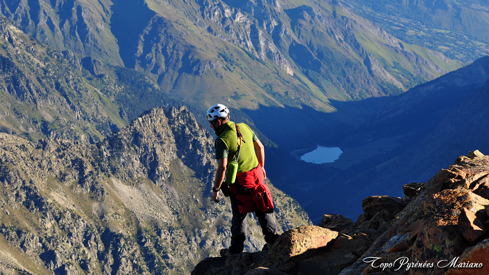 C’est là que l’on se rend compte que le poids est l’ennemi n° 1 du randonneur. Magnifique vue plongeante depuis ce petit éperon, les lacs d’Arriel et le lac de Gourg Glacé.