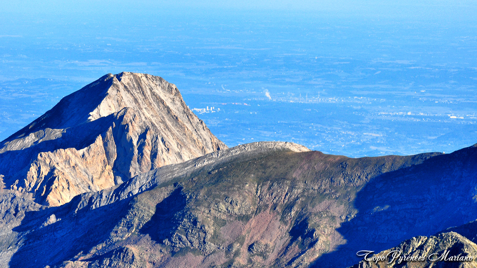 Le pic de Ger (2613m) avec la ville de Mourenx, l’usine de Lacq et Pardies.