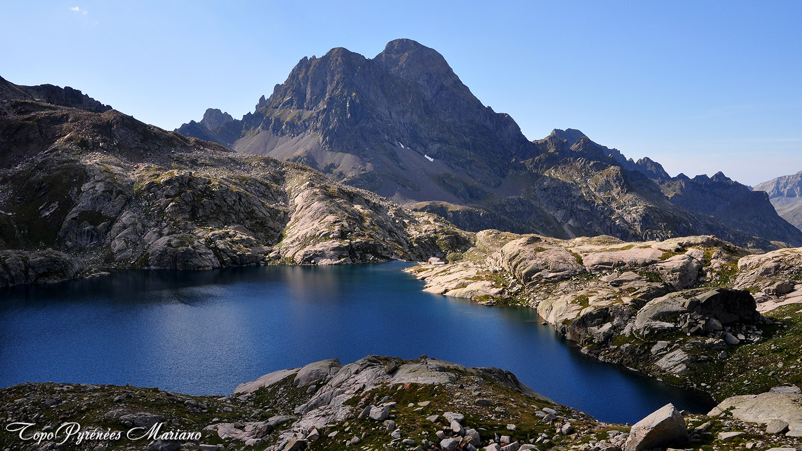 Le pic du Midi d’Ossau 2884m avec le refuge de Pombie en bas à gauche de la photo.