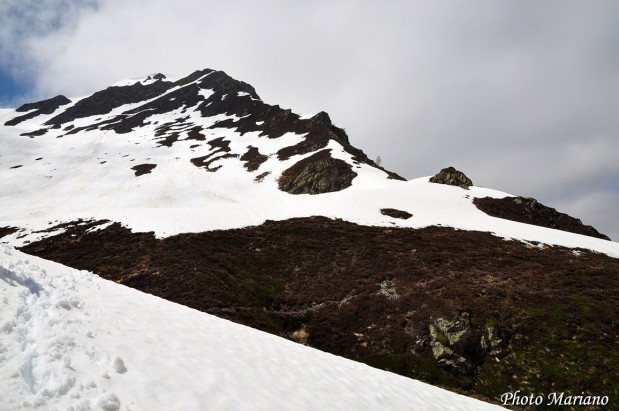Le Soum de Siarrousse (2018m) est bien dégagé et l’on voit bien que si nous étions montés en haut de ce sommet, la partie enneigée aurait posé problème !