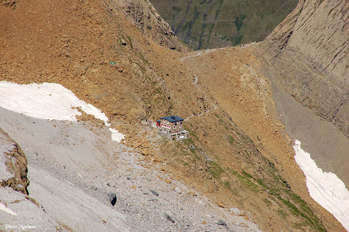 Vue plongeante sur le refuge des Sarradets 2587m.