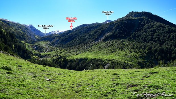 Le Chipeta Alto qui culmine à 2189m d’altitude est un sommet très accessible et sans grande difficulté en l’absence de neige, le secteur est magnifique. L’arrivée sur la crête débonnaire du Chipeta après 2 heures de marche est un véritable enchantement pour les yeux, des vues saisissantes et spectaculaires sur la Sierra de Alano et le Castillo de Acher pour ne citer qu’eux.
