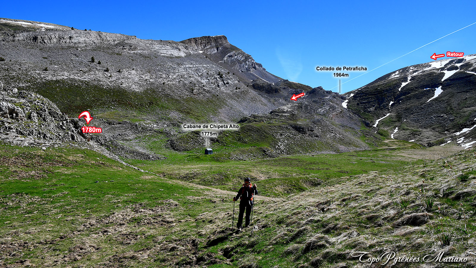 Après être restés 1h15 au sommet du Chipeta Alto, retour par le col de Petraficha.