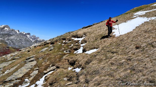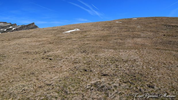 A partir d’ici, il faut grimper hors sentier sur une pente herbeuse modérée (Sud-Est).