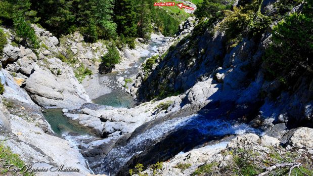 Nous perdons un peu de hauteur pour rejoindre le bas de la rivière. Par temps sec et en l’absence de neige aucune difficulté, par contre en cas d’enneigement, je comprends pourquoi le GR11 a été déplacé un peu plus haut.