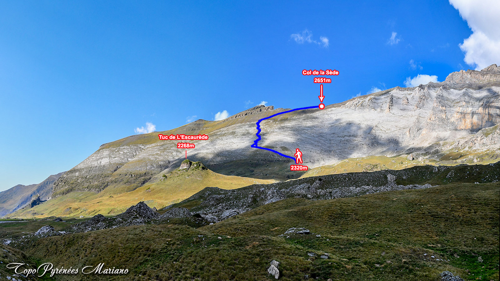 Difficultés: Passages qui demandent un minimum d’attention du pied des falaises (Tuc de l’Escaurède) au col de la Sède, à ne faire que par beau temps.