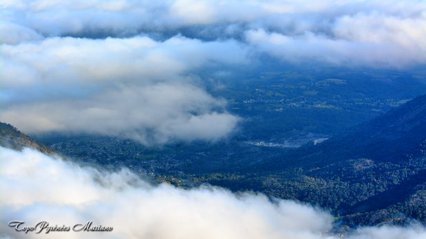 La petite mer de nuages s’est installée au-dessus de la vallée d’Ossau.