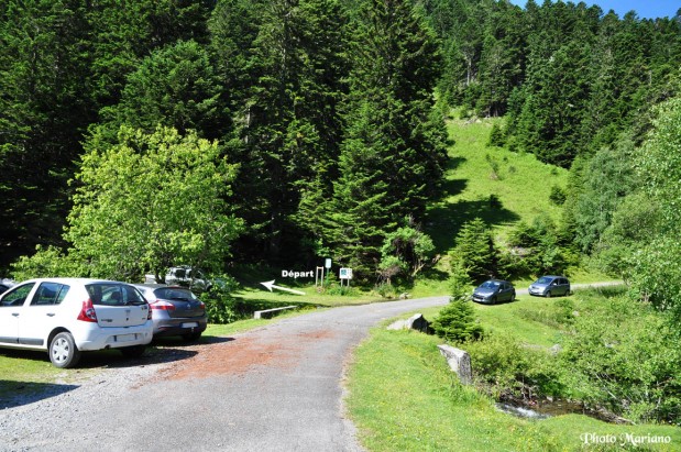 Départementale 935 (altitude 636m) prendre à droite après le pont, rouler environ 250m, puis reprendre à droite à nouveau, une route forestière en bitume jusqu’au parking (13 km en très bon état) Attention: Ne pas prendre la route du Chiroulet.