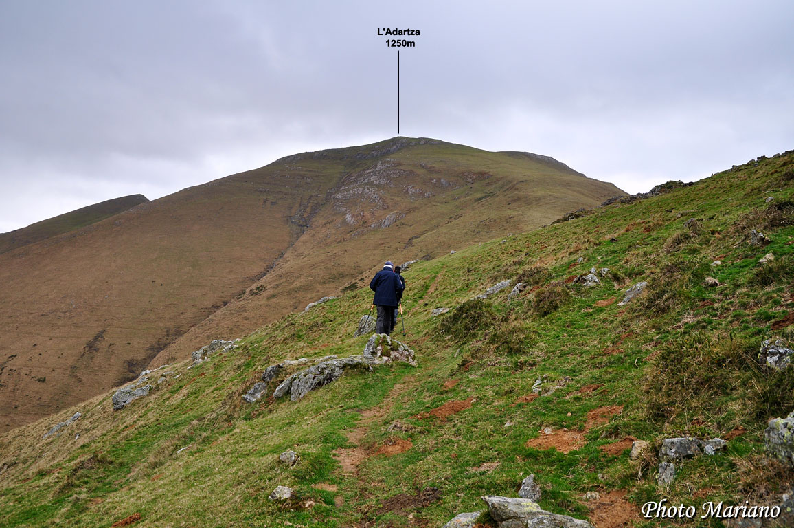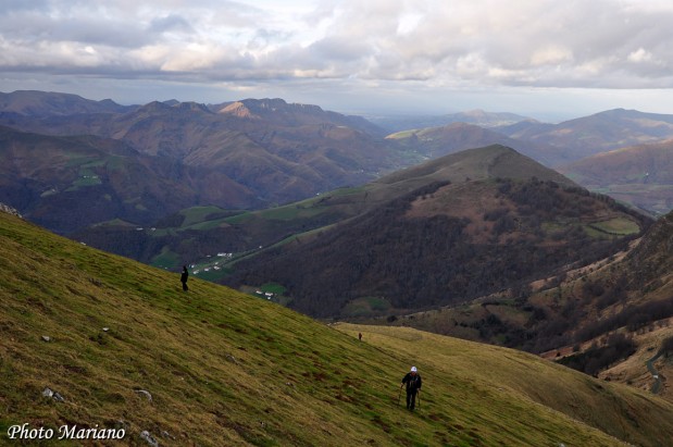 pour les randonneurs, descendre les pentes raides du versant Nord-N.O de l’Adartza.