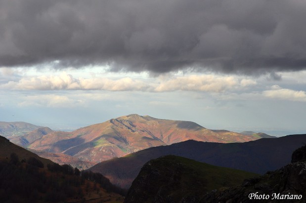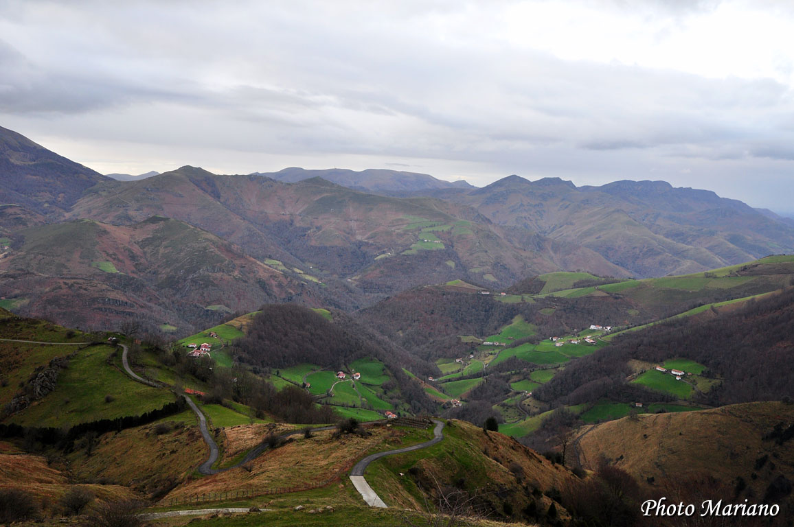 Vue derrière nous sur le col d’Arrolakoharria, l’Oylarandoy (930m) et le pic d’Iparla (1044m).