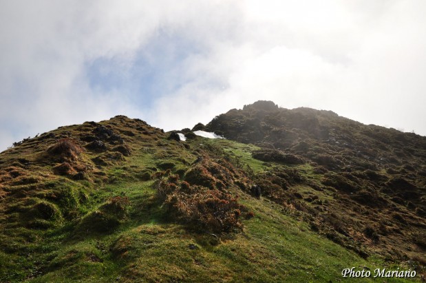 Il n’y a pas vraiment de sentier, il faut grimper un peu au juger vers le Nord-Est en suivant la crête.