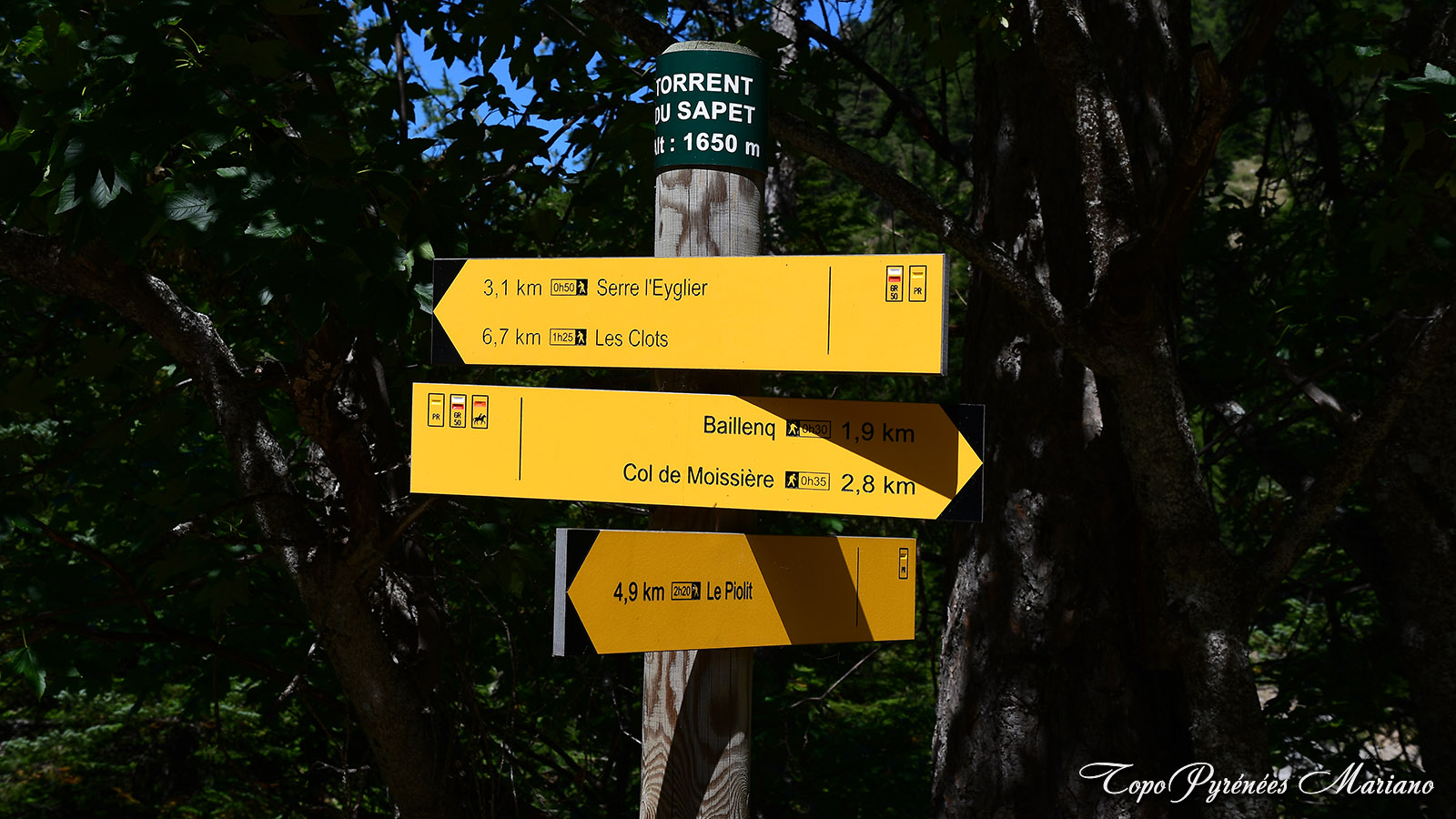 Depuis le parking (1650m), revenez en arrière pour franchir à nouveau le pont du Sapet, puis s’élever vers l’Est sur un sentier bien marqué.